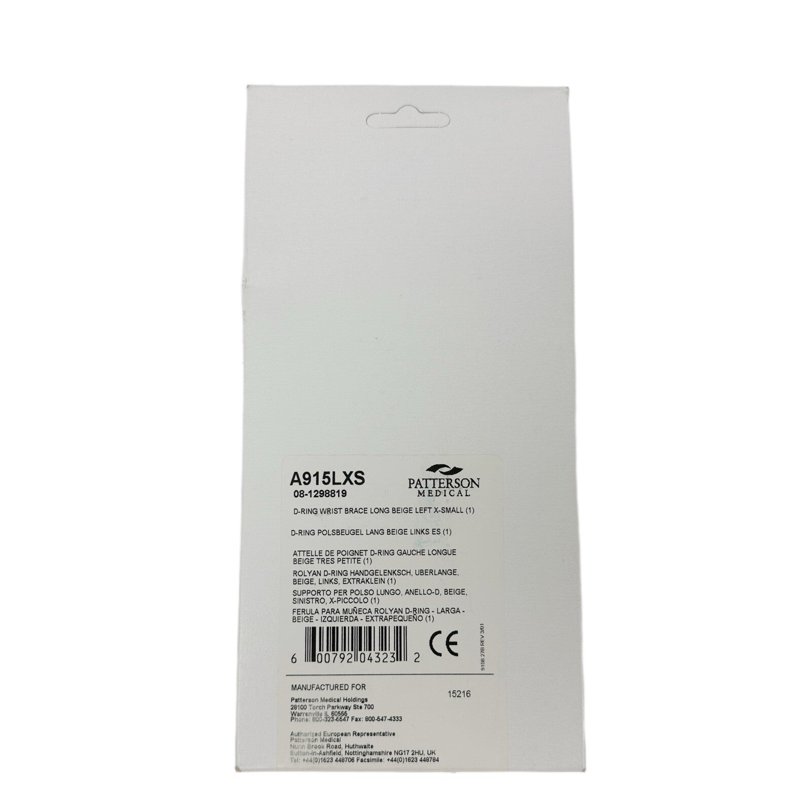 Patterson Medical Ref A915LXS D-RING WRIST BRACE LONG BEIGE LEFT X-SMALL